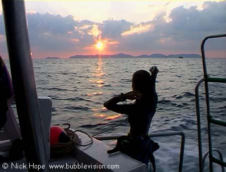 Aboard MV Santana after the last dive of the day at Richelieu Rock.