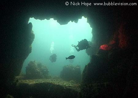 A dive at Burma's Western Rocky Island often ends with a swim through this atmospheric underwater arch at 15-20m.