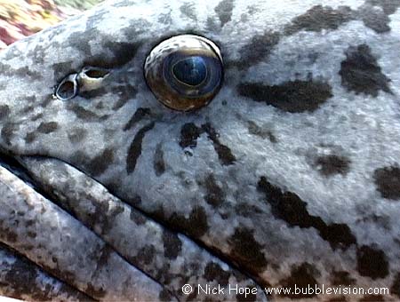 Close up with Freddy, the hungry potato grouper (Epinephelus tukula) at Silvertip Bank.