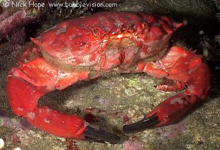 At Burma's Moving Wall the splendid round crab Etisus splendidus is often out and about by night. They are extremely nervous of divers and their bright lights.