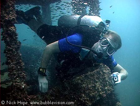 Bubble Vision customer Ralf emerges from the King Cruiser's starboard bridge wing while being shot for his souvenir video.