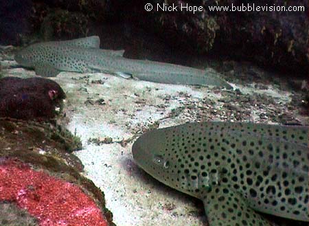 A pair of leopard sharks (Stegostoma fasciatum) resting on the seabed at Koh Bon.