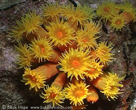 Koh Doc Mai is cloaked in a huge variety of corals. This pretty orange cup coral (Tubastrea Coccinea) is in abundance.