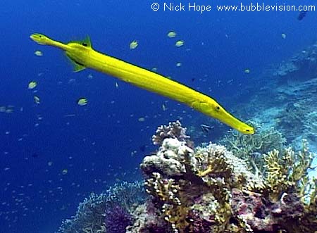 A yellow trumpetfish (