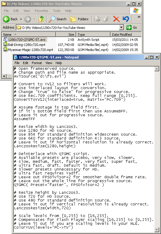 For more information and further settings, consult the QTGMC-3.32.html help file which you unzipped to your AviSynth folder. Also read this post on doom9 by the QTGMC author.