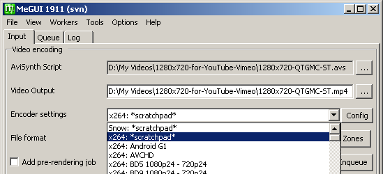 Note that my old method for rendering standard definition videos for YouTube used VirtualDub and Xvid instead of MeGUI and x264. You can read about it here.