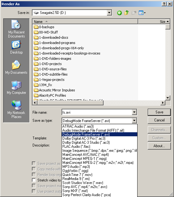 Note that there is a bug with Debugmode Frameserver in Vegas Pro 12.0 and later that affects the audio. It will only serve audio at 44.1kHz, and the last second of the audio stream is corrupt and extends beyond the video stream. Read section 4 of this post for details and alternatives.