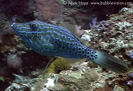 The scribbled filefish (Aluterus scriptus) is the biggest of the filefish family and is usually found alone.